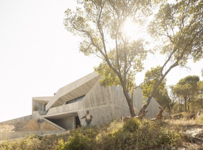 A moradia desenhada pelo ateliê Contaminar, de Leiria, aproveita o contexto singular em que se insere para um tributo às origens da Humanidade